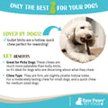 Gullet LOVES these little sticks. They are only 45 kcalories. I give them to him 2 at a time, well one at a time, twice. He would come back for more and more if I'd let him. I feel good about giving them to him because they are only 45 kcal. They smell yucky so you know dogs will love them!!