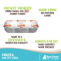 Made in USA. Small Batch. Frozen Raw. Our signature blend lamb recipe pet food is made of 80% meat, 10% organ, and 10% bone. We chose to keep our blends as natural as possible to best reflect what our pet’s ancestors ate in the wild. Just meat, bone, and organ!