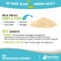 Made in USA. Grain-Free. Gluten-Free. Wheat-Free. Liven up your pet’s meal with a Boost of flavor and nutrition! Entice the pickiest of eaters - mildly sweet, earthy-nutty flavor. Vegan, plant-based topper.