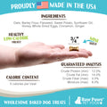 Oats, Barley Flour, Flaxseed, Sweet Potato, Sunflower Oil, Honey, Whole Dried Eggs, Cinnamon, Ginger.